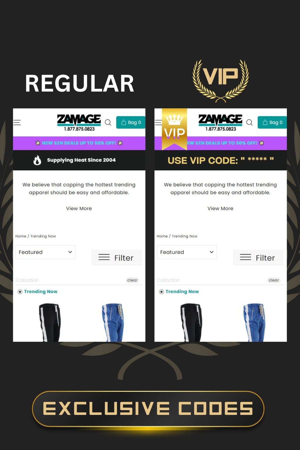 INSTANT BLOWOUT DEALS & PROMOS are ahead! Zamage VIP Membership comes loaded with benefits. At Zamage we believe in "quality" and "quantity". We're driven to provide the hottest drops at the most affordable prices ANYWHERE. Your VIP Membership takes that to the next level, by giving you access to instant blowout items, special promos, and much more!