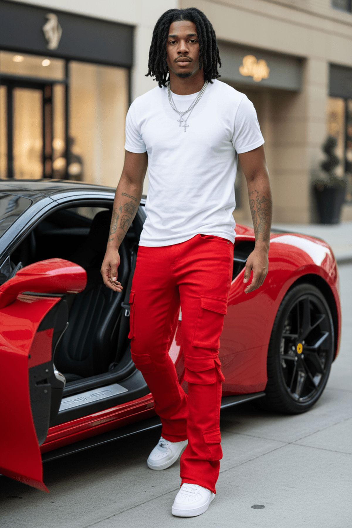 Vortex Cargo Stacked Denim (Red)